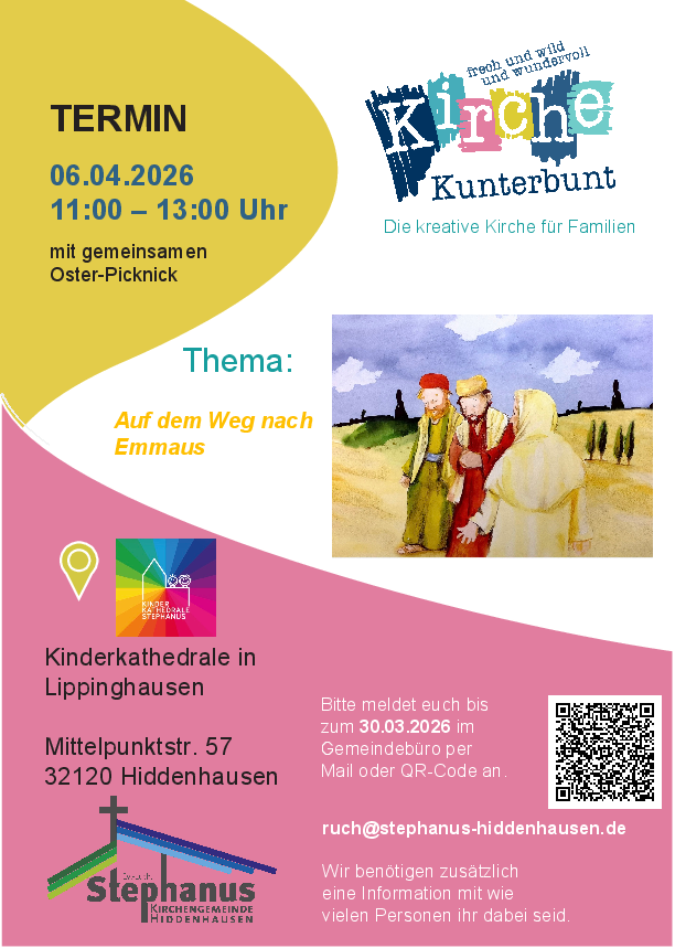 Bitte meldet euch bis zum 30. März im Gemeindebüro oder per Email unter ruch@stephanus.hiddenhausen.de an.