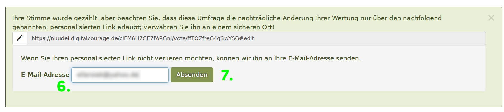 - Man kann seinen eigenen Eintrag noch ändern (wenn man sich den Link zusenden lässt. Siehe oben, Punkt 6. und 7.)
