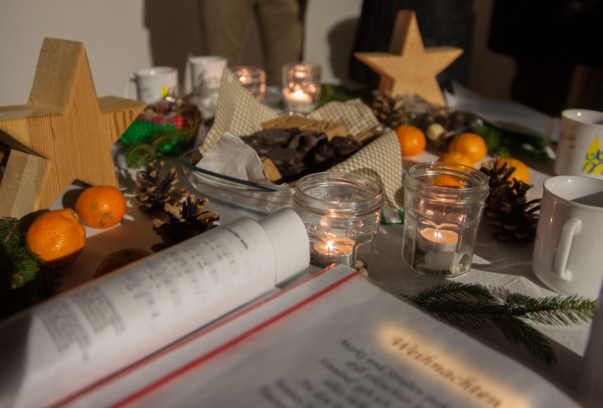 Um in der Adventszeit gemütlich zusammen zu kommen laden Menschen aus der Gemeinde zu einer halben Stunde bei heißen Getränken und Gebäck zu Gesprächen, Weihnachtslieder und Geschichten ein.